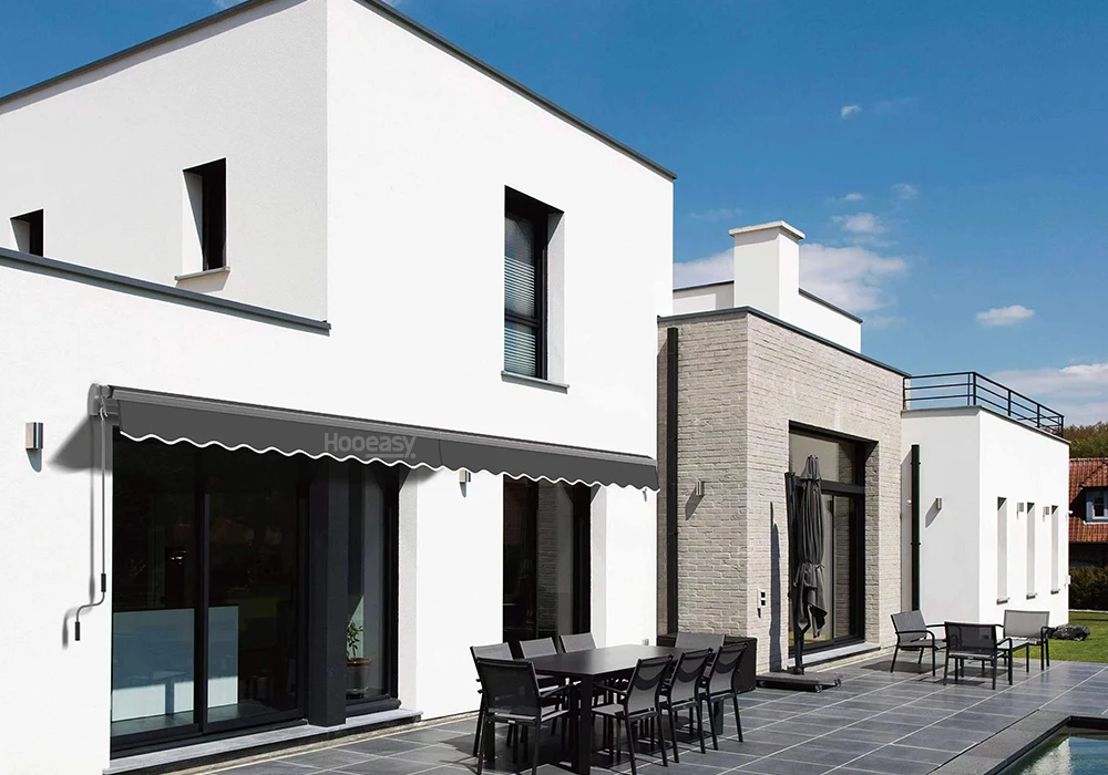 A Hooeasy kd economical retractable awning1100KD does not have a cassette. But Hooeasy 1100KD belongs to promotional and economical type, as a kd economical retractable awning, the Hooeasy 1100KD provides ideal sun protection for balconies and terraces with large roof projections.