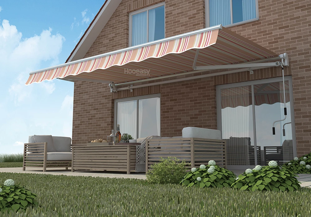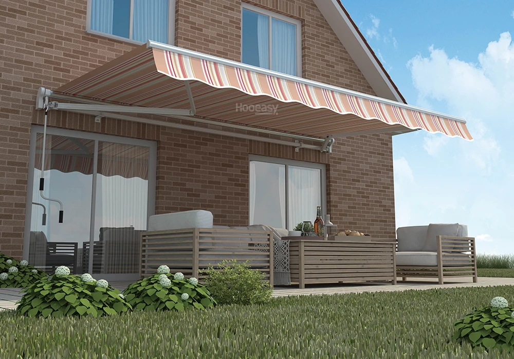 The Hooeasy economical retractable awning 1200 is robust and reliable, fulfilling all the requirements of a quality awning. With the optional pitch adjustment gear, you can determine the angle at which the awning will shield you and your loved ones from the sun. It is also possible to request: a retractable fabric cover on the front profile to block low-angle sunlight and unwanted sightlines. Turns out, simple can be so beautiful!