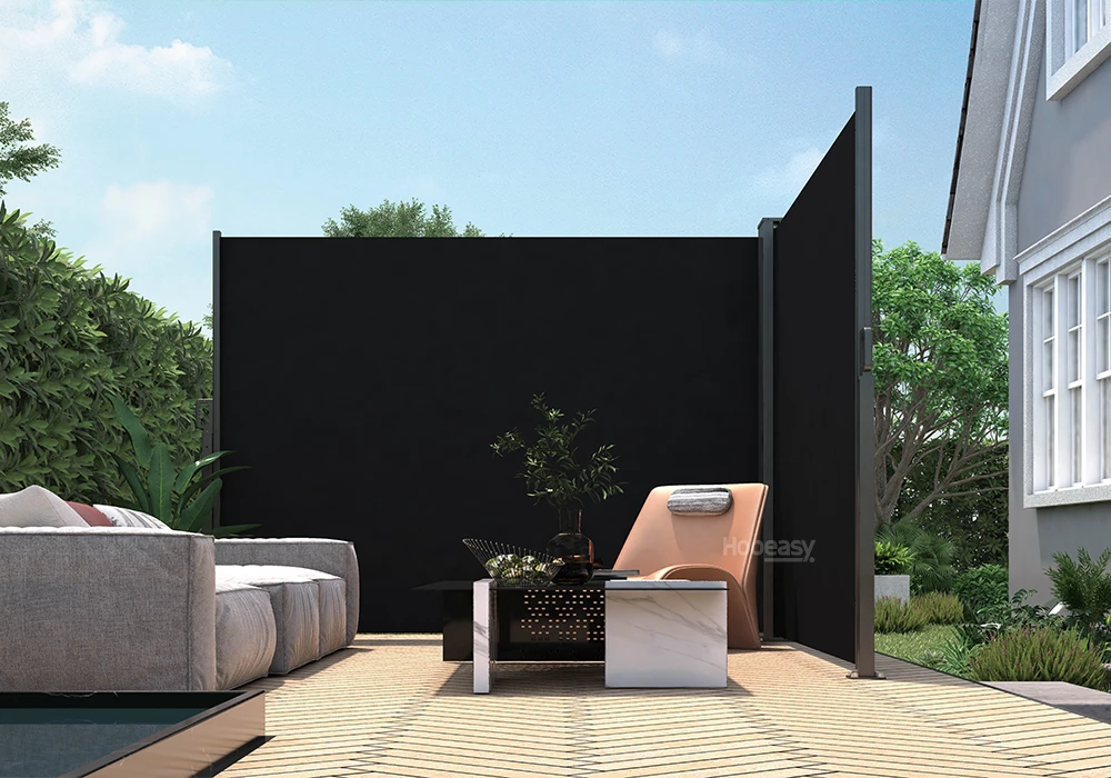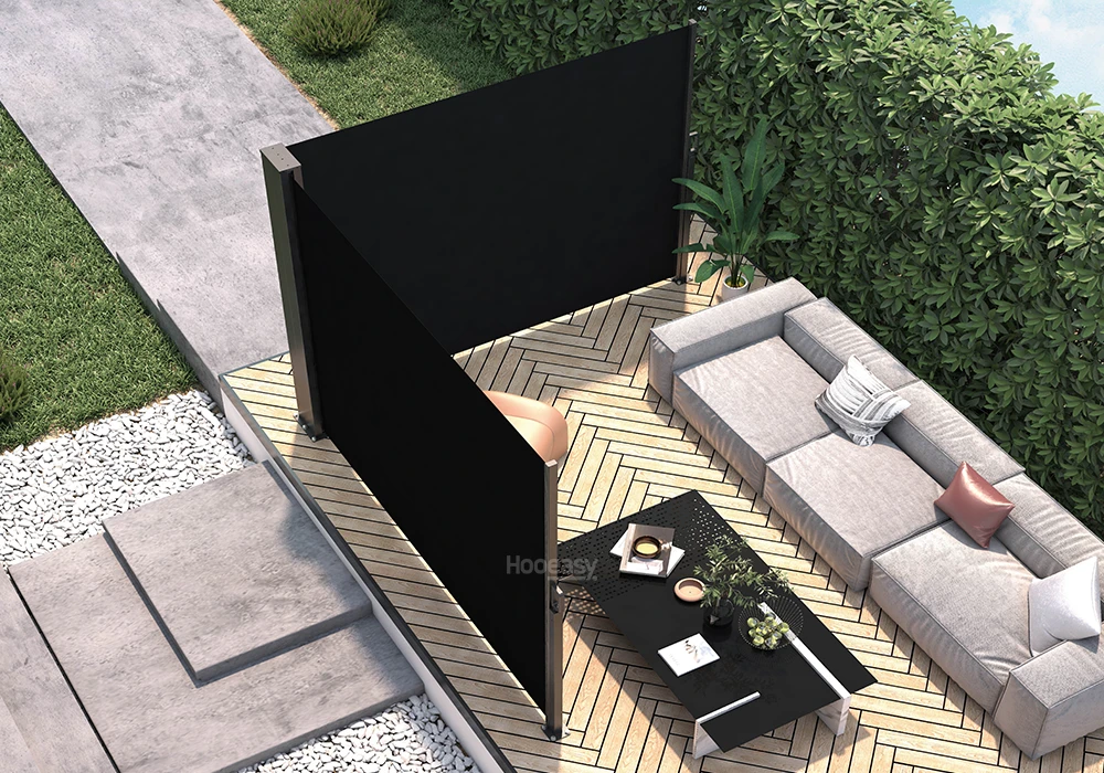 - This side awning/folding screen is not only an ideal protection against wind and sunshine,but it also can create a private space.
