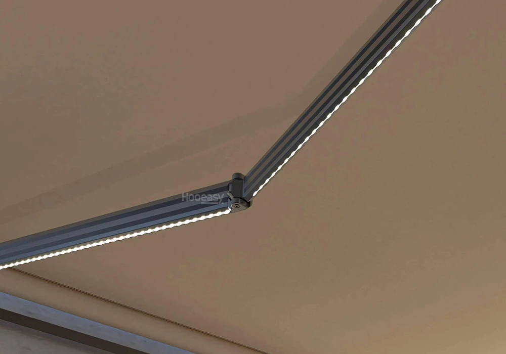 Thanks to its shape, optional LED lighting on the folding arms and the timeless beauty of aluminium, the Hooeasy 3430L is able to shine on almost any terrace with its outstanding look and shape details.
