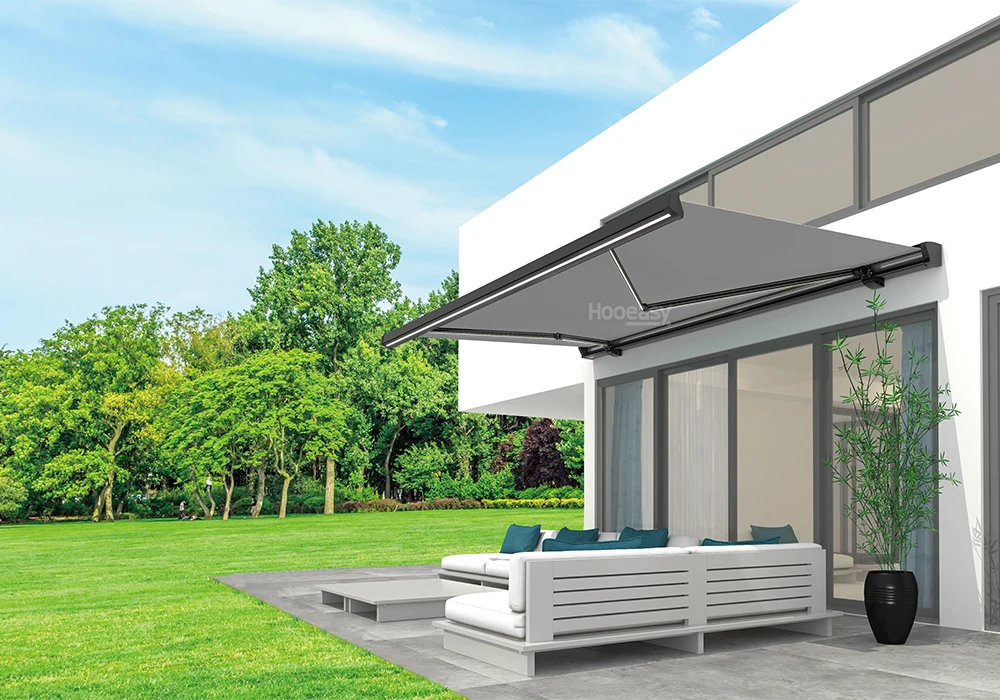Clear, consistent, cube-where does the building end and the shade begin? With the Hooeasy deluxe full-cassette awning 6600, the transition is smooth. Its cube-like shape fits perfectly into modern residential architecture as a stylish design element.