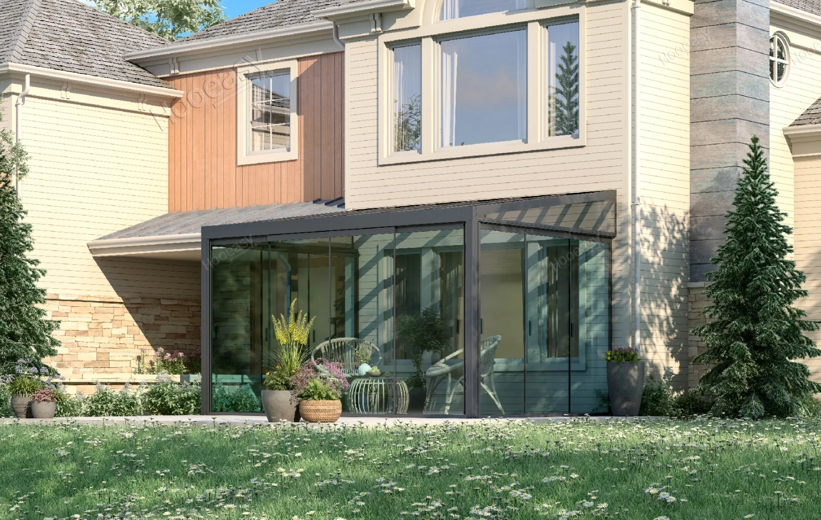 The carefully crafted sunshine room will fill your life with sunshine and warmth!