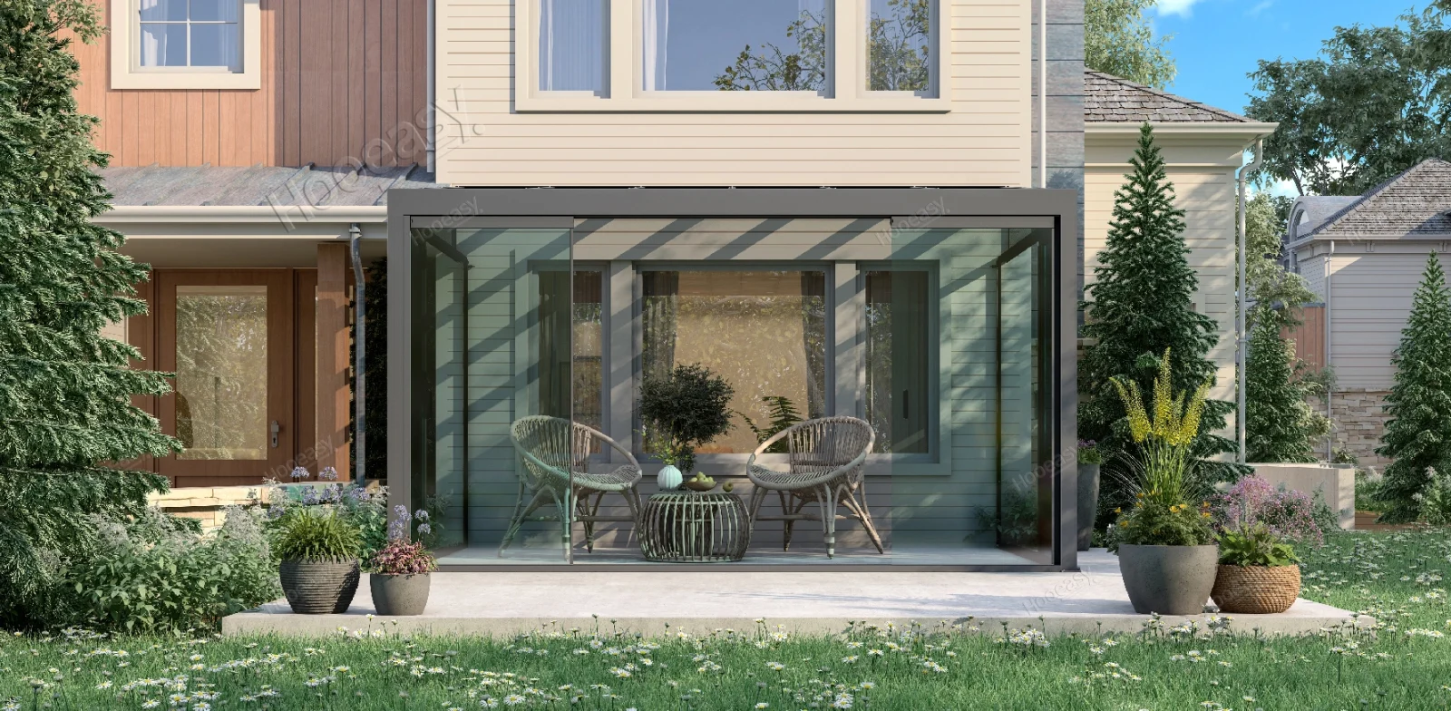Protect from excessive sun. Regulate the climate completely energy-saving. Put shadows where it is needed quickly: with Hooeasy.